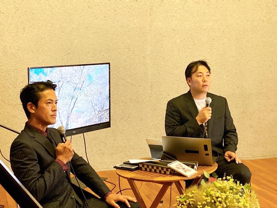 写真は、コロナでお客様を呼べず、そのころ始まった配信イベントとして武蔵ホールで開催されたイベントに井上雅貴監督と監督作品に出演した俳優の山本修夢をお呼びし、「映画と音楽」について、トーク頂いた時の写真です。